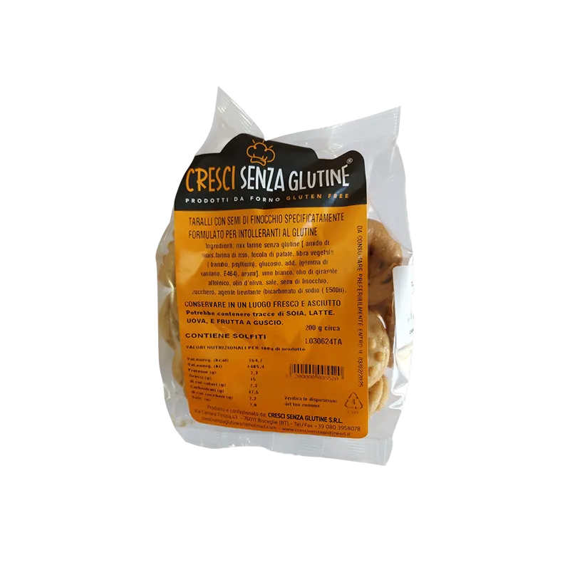 Taralli pugliesi senza glutine e senza lattosio. Tutto il gusto della tradizione pugliese, in un prodotto sano e genuino.